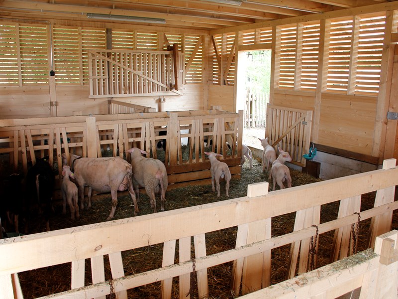 Zum Ablammen kommen die Schafe in unseren neuen Stall, den wir 2013/14 dank einer Spende vom Lotteriefonds bauen konnten. Das ganze Dach ist eine Solaranlage mit einer Leistung von 30.00 kWp. Der Stall ist auch das Nachtquartier für unsere Gänse und Hühner, die tagsüber auf einer grossen Wiese ihren Freilauf geniessen. Wir teilen den Stall mit unserer Partnerin, der Greifvogelstation Berg am Irchel, die von der Stiftung PanEco betrieben wird.