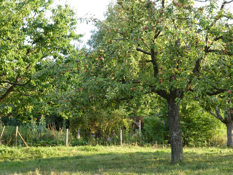 Obstgärten mit mehr als Hundert Hochstamm-Obstbäumen prägen die Landschaft des Hofs. Zudem gibt es bei uns eine Vielfalt von Kräutern, ein grosser Beerengarten, Hecken, ein Rebberg und ausgedehnte Weiden. Dort grasen unsere Milchschafe fast das ganze Jahr.