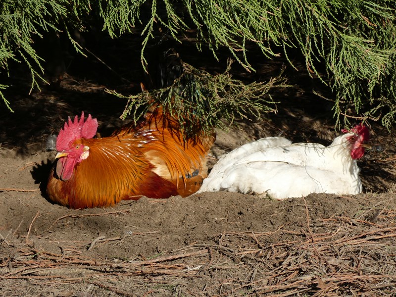 … der kurz darauf abrupt verdrängt wurde. Aber die Hühner genossen den kurzen Sonnenschein und das erfrischende Wellness-Sandbad.