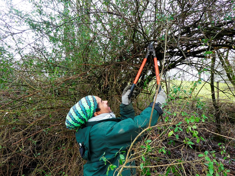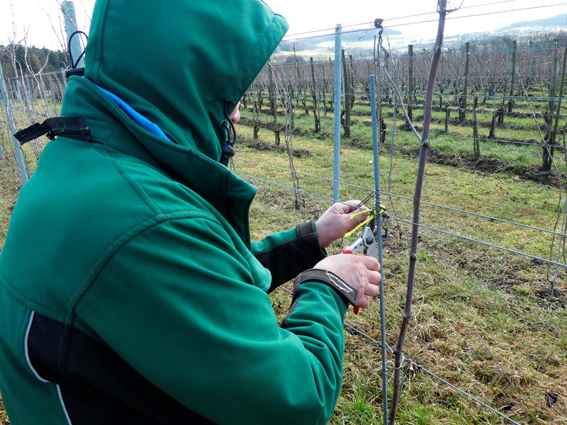 Obwohl windig und kalt – Ralf kann es nicht abwarten bis es wärmer wird und so geht er seiner Lieblingsbeschäftigung nach – der Rebenpflege.