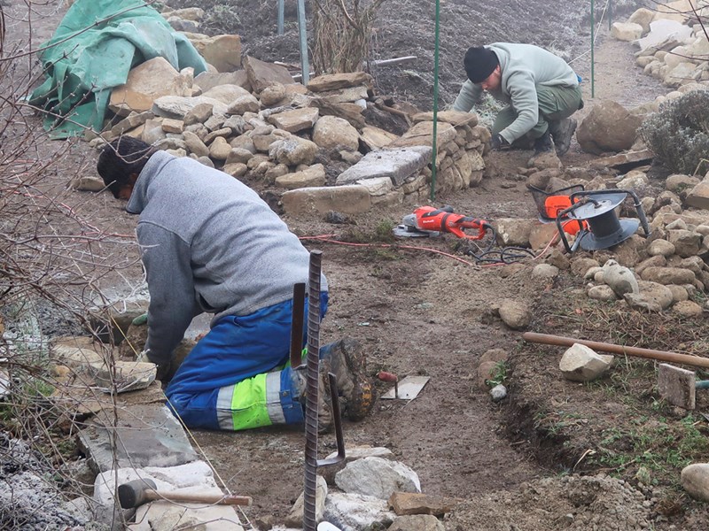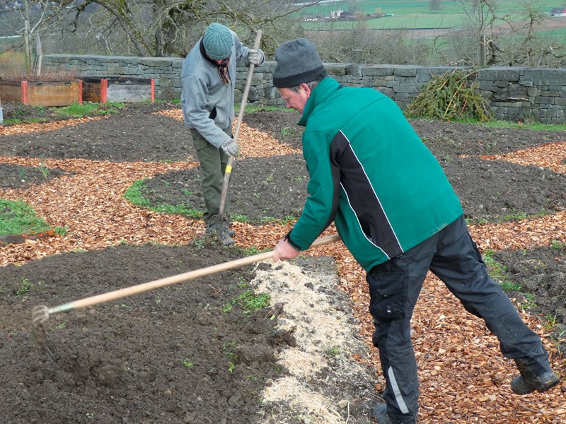 Emsig arbeitet das BungertHof-Team seit einigen Wochen an der Terrassierung des Gartens unterhalb der Kirche Berg. Kälte und Nebel wird tapfer getrotzt. Um den Boden zu schonen, wird auf den Einsatz von Bagger und anderen Maschinen verzichtet. Mehr erfahren